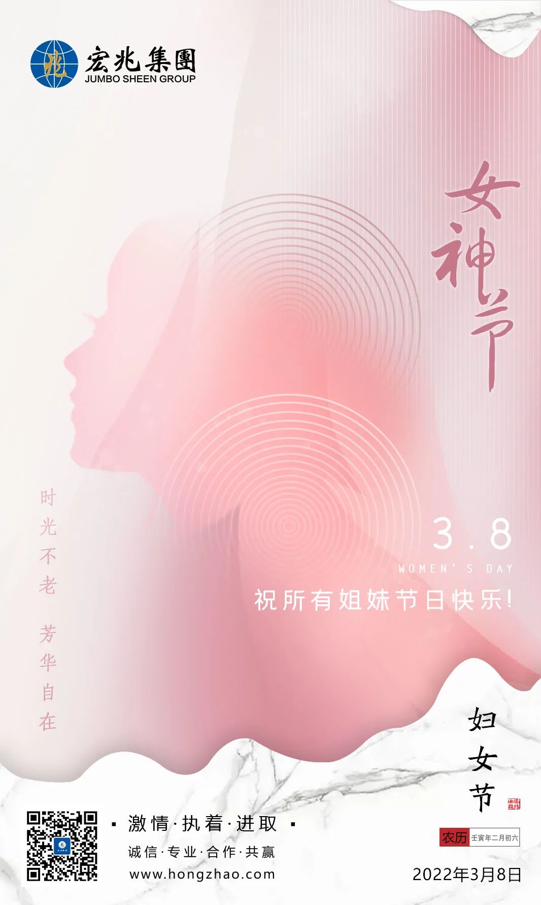在这里,宏兆集团祝愿公司所有的女同胞们美貌与智慧并存,才华与气质兼备,健康与快乐同在,永远保持青春美丽!