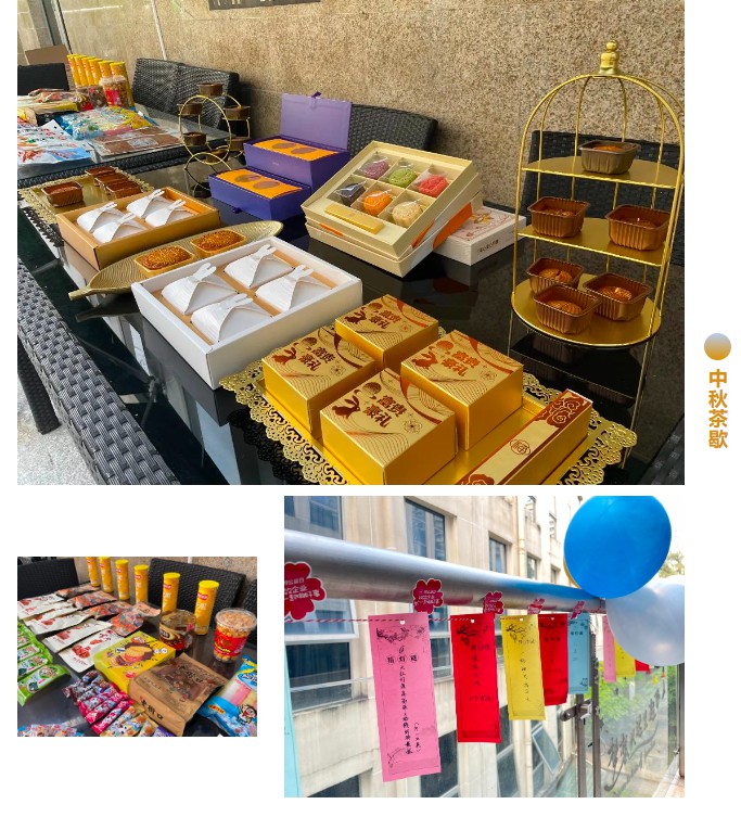值此中秋团圆之际,宏兆集团人力资源部门特别组织了中秋茶歇,提前与宏兆家人们一起过中秋,贺团圆。 美味的月饼、精致的糕点、趣味灯谜、套圈游戏……这个下午的宏兆,显得特别的温暖欢乐。 宏兆集团祝宏兆家人们及各位合作伙伴 佳节喜乐,阖家团圆,共享明月 - END -