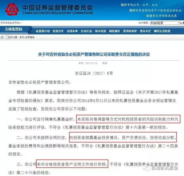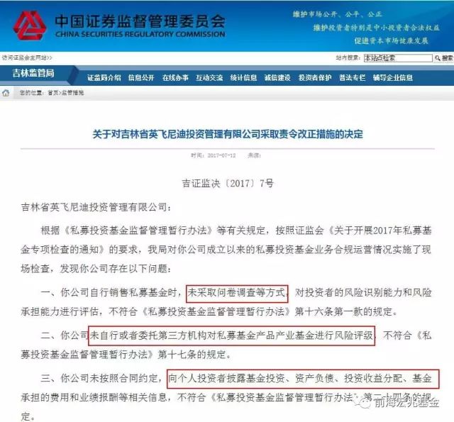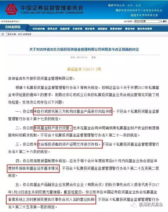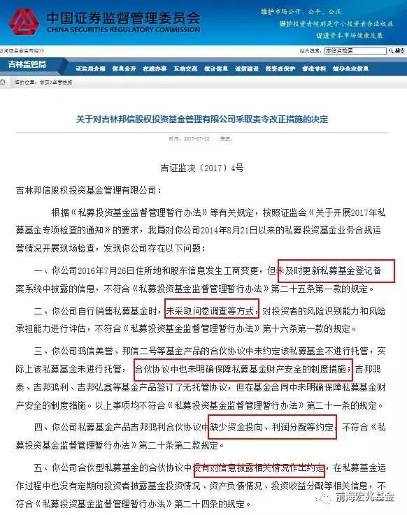 7月12日,吉林证监局一连发布6条监管措施决定,分别针对吉林省旅游产业投资、吉林邦信股权投资、长春明翰投资、吉林省励合必拓资产、吉林省英飞尼迪投资、吉林省吉东方股权投资等6家私募公司。