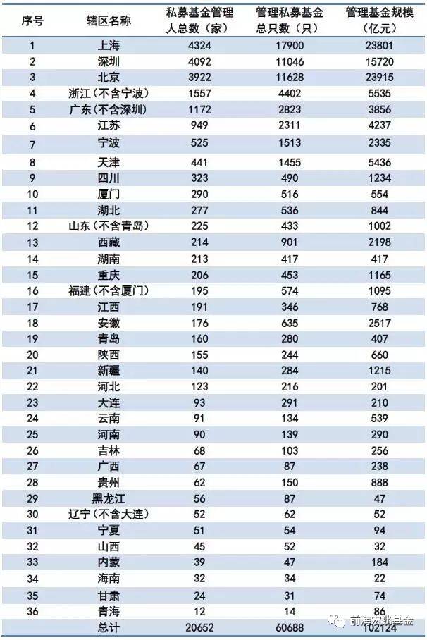 表1 私募基金管理人按注册地分布情况(36辖区)