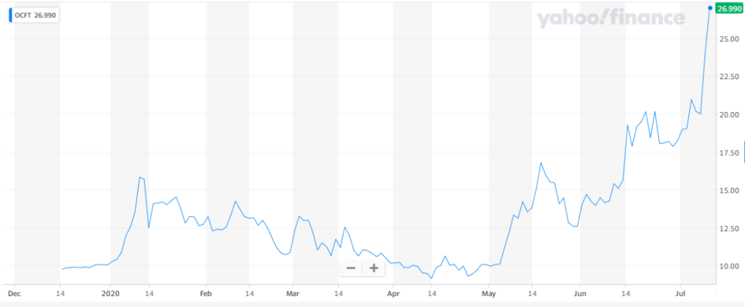 美东时间7月10日收盘,中国领先的金融科技云服务平台-金融壹账通(OCFT.US)股价再创新高,最终涨幅为12.65%,收盘报26.99美元,公司市值达到99.67亿美元。盘中股价一度最高至28.8美元,市值突破100亿美元。