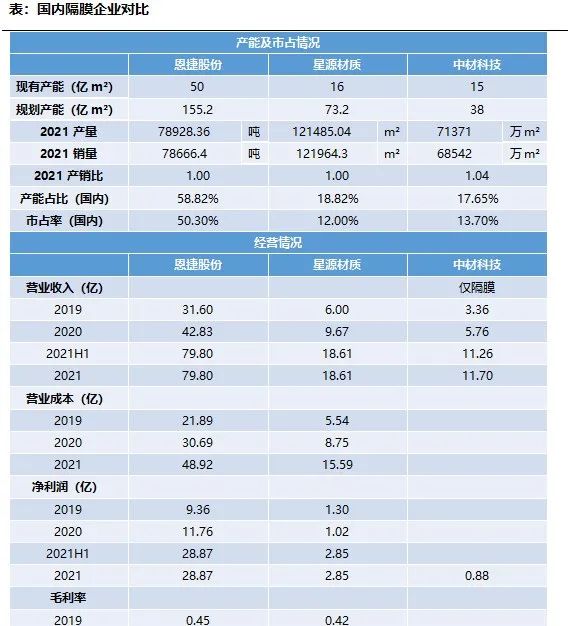 作为四大关键材料之一,隔膜技术含量较高,成本约占锂离子电池成本的10%-20%,毛利率可达50%-60%,是四大主要材料中毛利率最高产品。