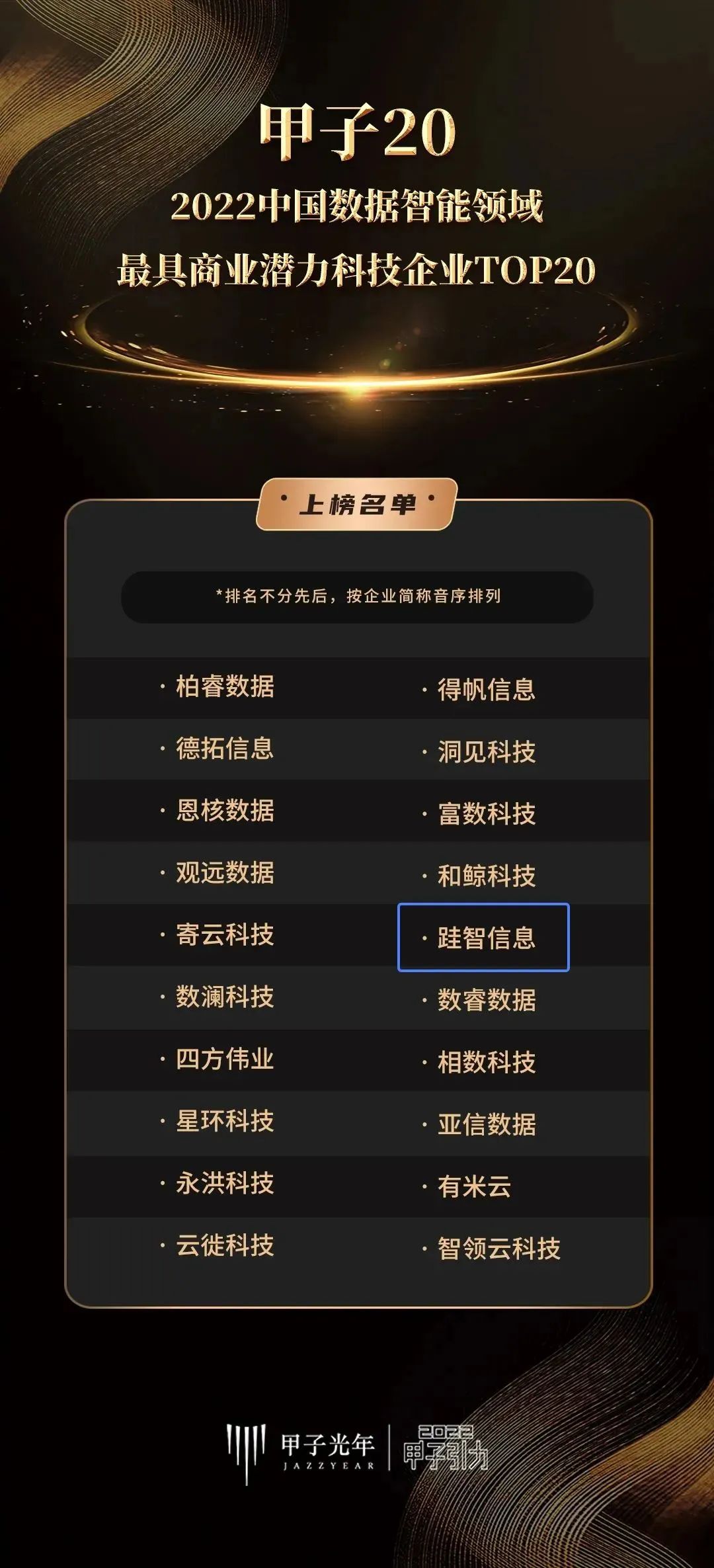 ✦ 近日,为表彰中国科技产业与数字经济领域的杰出贡献者,中国科技产业智库甲子光年在 2022「甲子引力」年终盛典上公布多项榜单。凭借在数据智能领域的核心技术优势与高成长性的商业价值表现,跬智信息(Kyligence)最终荣登「甲子20」中国数据智能领域最具商业潜力科技企业榜。 ✦ ✦ 数据智能关系着业务战略的制定与发展方向,是企业数字化转型的重中之重。数据及指标作为数字化转型的基本生产资料,如何管理好、利用好、治理好成为企业高质量发展的关键抓手。随着企业智能化应用场景更加丰富,以实现高效管理、业务发展降本增效为目标,数据智能正在为企业构建愈加创新的管理和业务模式。 作为兼具本土落地能力及国际化视野的企业,跬智信息(Kyligence)深刻理解行业需求和痛点,基于指标体系打造了指标引擎、指标中台产品及技术解决方案,助力业务用户聚焦数据指标及管理,释放业务自助分析潜力,构建更完善的数智化管理体系,实现快速的数据洞察和行动决策。截至2021年,跬智信息(Kyligence)已掌握大数据基础设施的核心技术,拥有30余项国内外专利以及近80项软著认证。 跬智信息(Kyligence)是专精特新代表企业,始终坚持在数据服务与管理领域深耕细作,并曾多次入选上海市大数据服务供应商推荐目录、Gartner 增强数据分析推荐厂商、Gartner 数据管理技术成熟度曲线报告等。 与此同时,发展信创、打造全面自主可控的国产 IT 架构已逐渐成为数字化建设的重要战略方针。跬智信息 (Kyligence) 结合大数据上下游的产业链,积极推行与行业生态合作伙伴的适配验证,目前已经实现与国产化软硬件技术的验证落地,并形成了配套的行业解决方案。 数据智能引领数字化转型新未来,跬智信息 (Kyligence) 将继续保持前瞻性、创新性与领先型,为金融、制造、零售等多行业提供自主可控、高性能、高质量的产品与服务,推动产业智能化升级、加速企业数字化转型。
