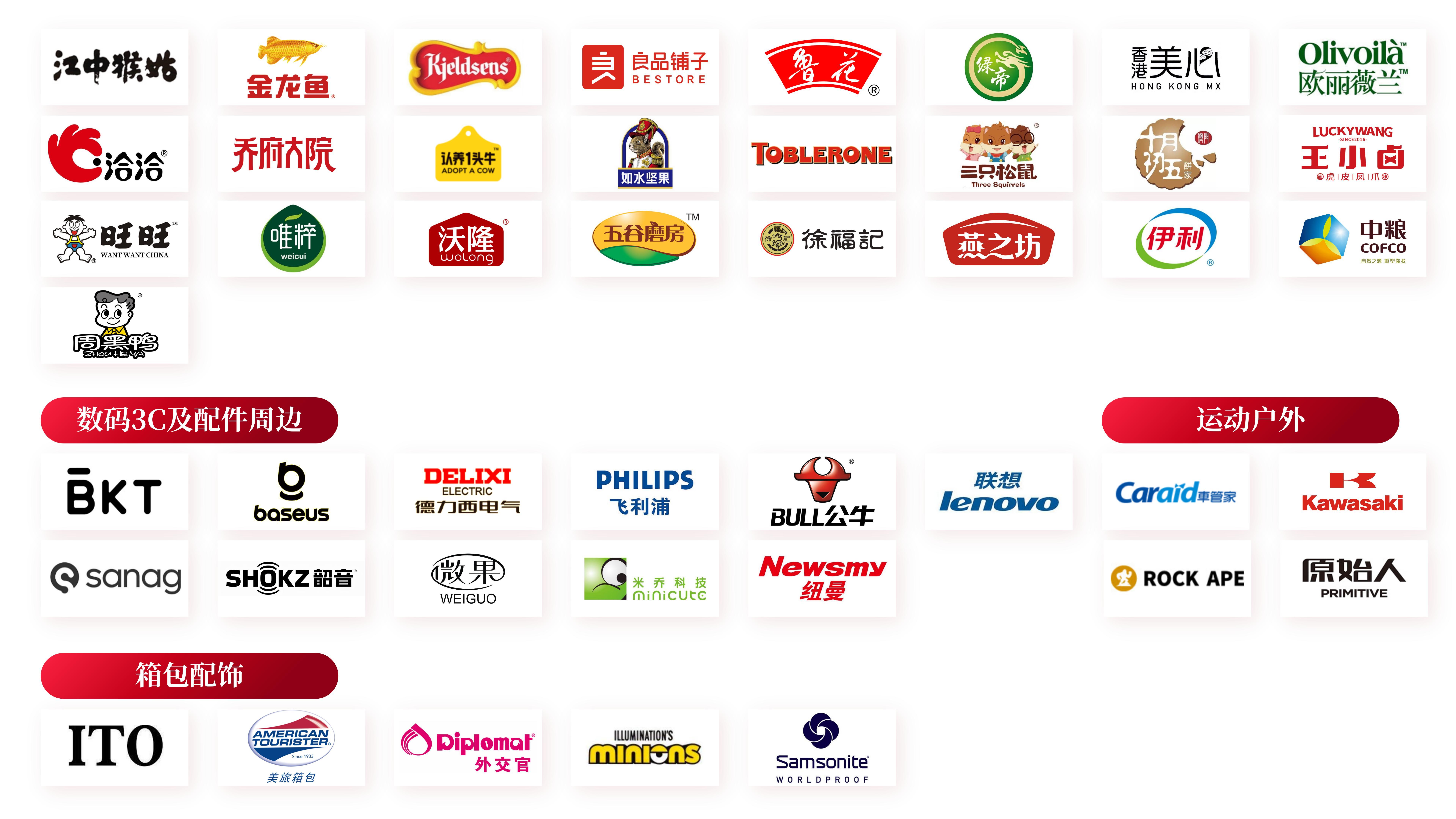 食品:三只松鼠、良品铺子、八马茶业、金龙鱼等