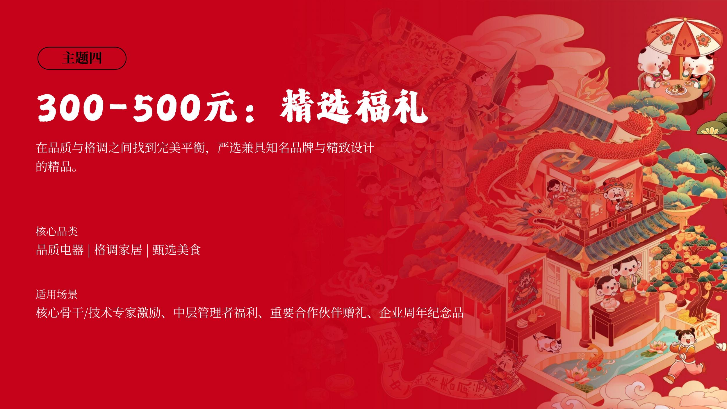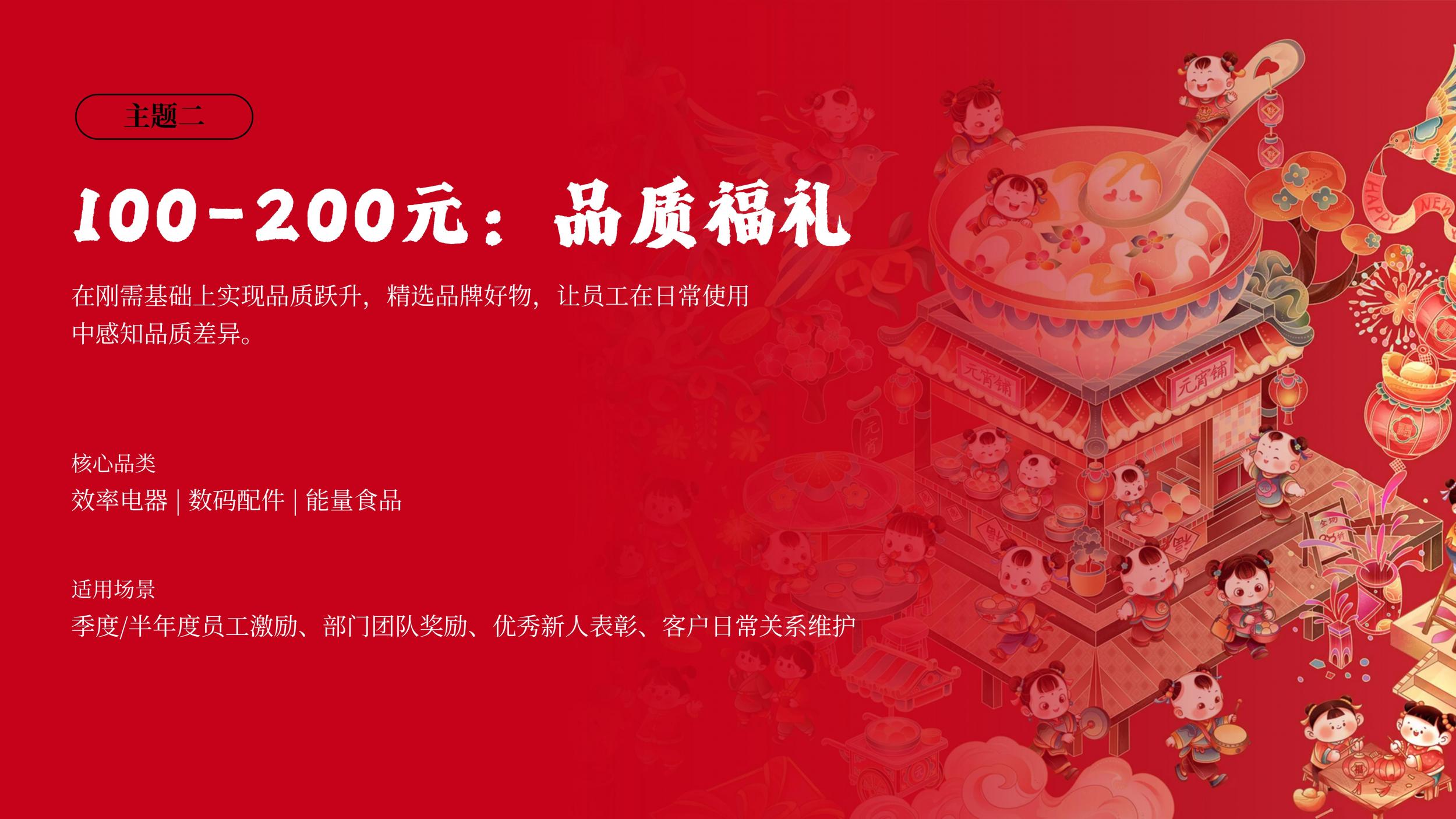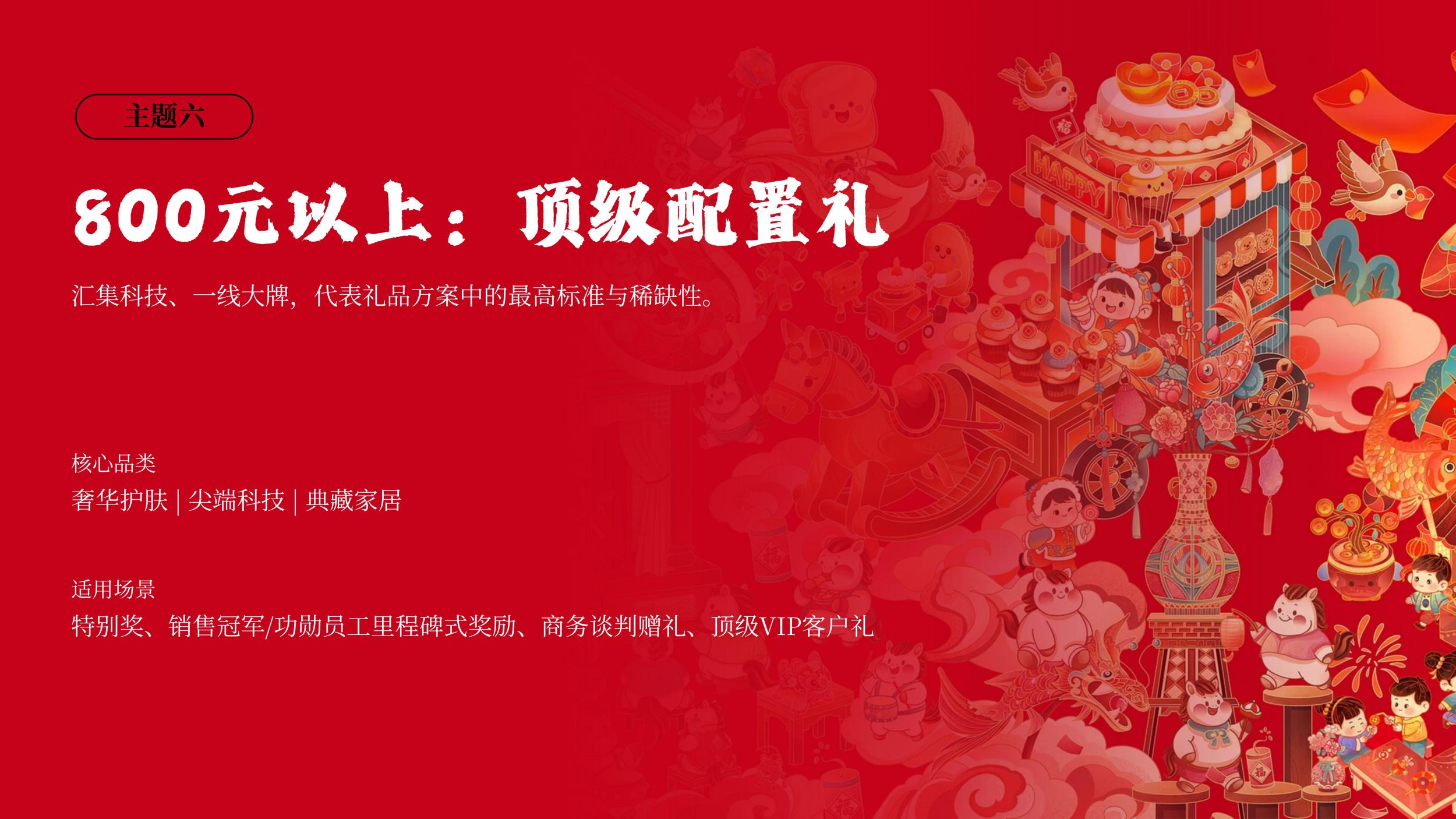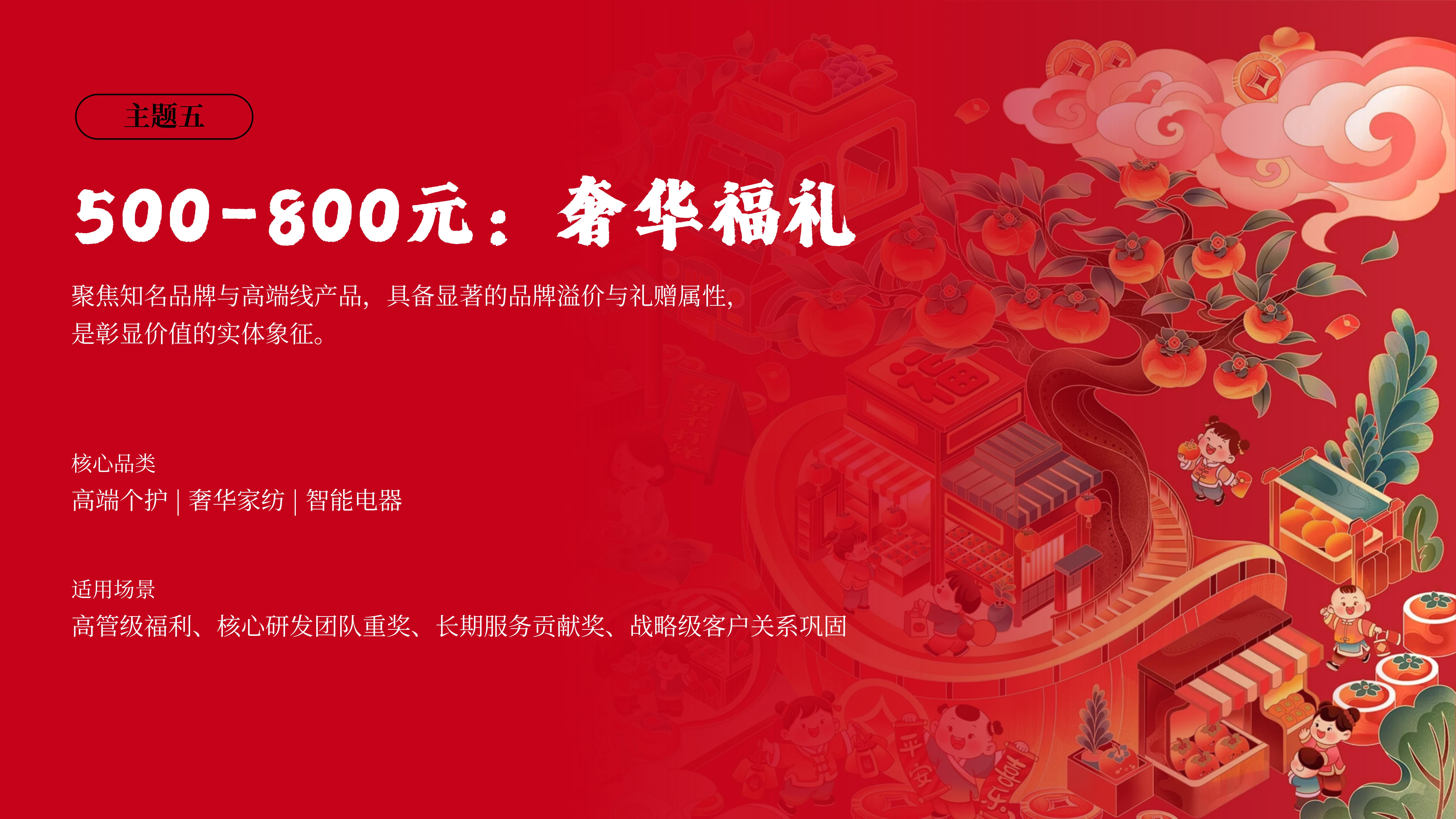 《马上有福》方案设计了六大预算区间的礼品主题,全面覆盖从基础关怀到高端激励的不同场景,支持企业进行灵活组合与深度定制。