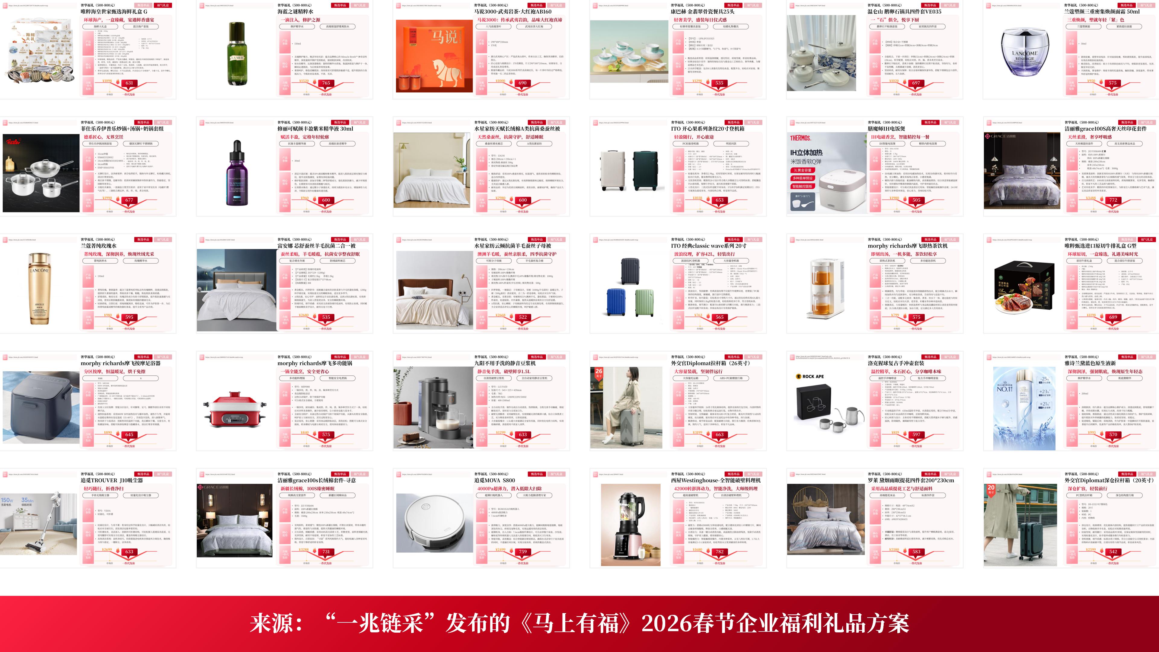随着2026年春节的临近,企业福利作为传递关怀、凝聚团队的重要方式,其意义愈发凸显。一兆链采诚挚向您推荐《马上有福》——2026年马年春节福利礼品采购方案。本方案基于对市场趋势的深入洞察与企业需求的精准把握,致力于通过多元、优质、灵活的礼品选择,助力企业高效传递对员工的诚挚感谢与新春祝福。