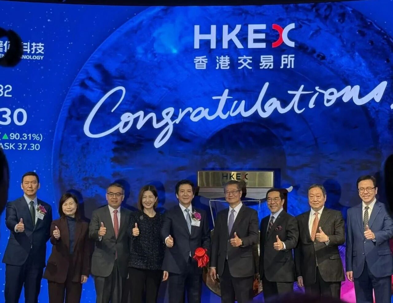 市新股及募资规模最大的18C章节IPO项目,募资净额53.75亿港元,超额认购超2300倍。多位香港政府领导人参加了敲锣仪