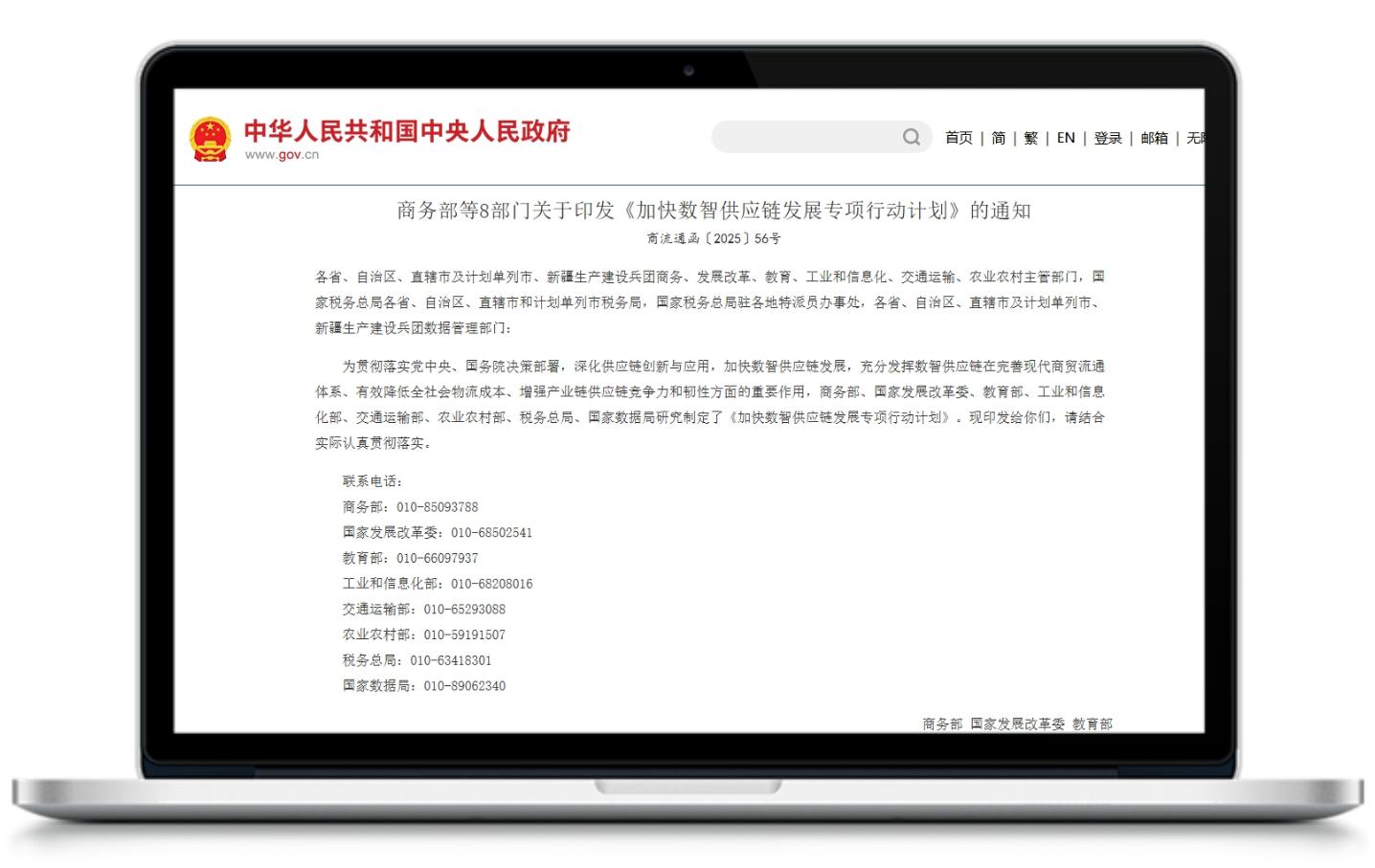 商务部等八部门联合印发的《加快数智供应链发展专项行动计划》(商流通函〔2025〕56号)明确提出: