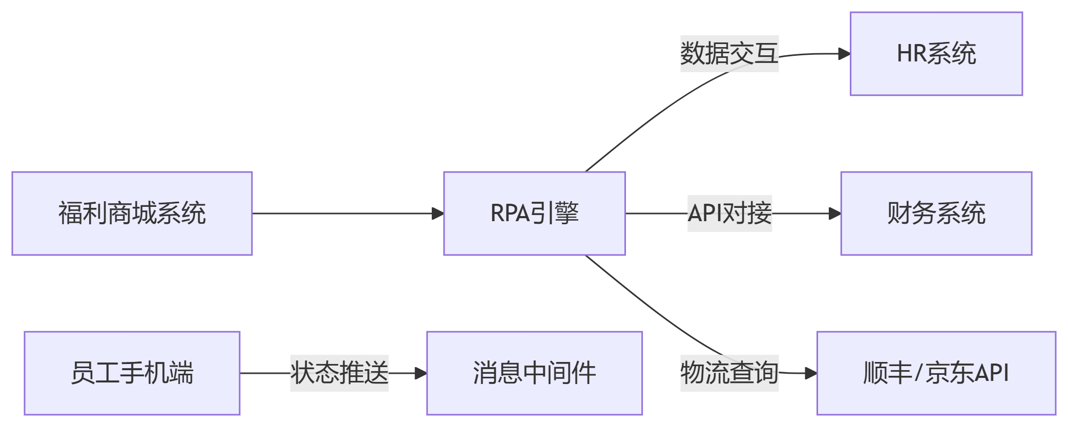 RPA静默完成数据处理,员工仅感知结果(如生日当天自动收到礼品卡短信)