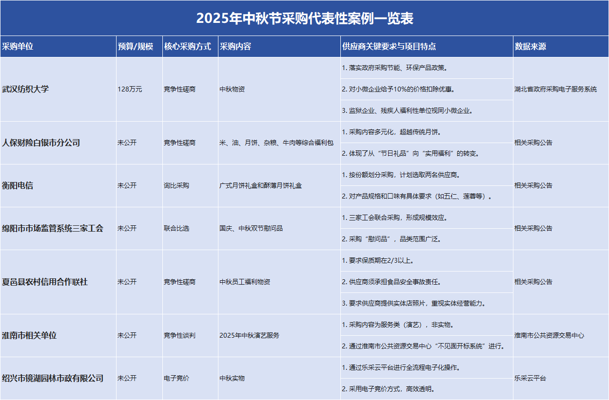 随着2025年中秋节的临近,各企事业单位的采购工作已陆续启动。通过对近期发布的招标公告和采购信息的分析,2025年中秋节采购市场呈现出明显的变化趋势。