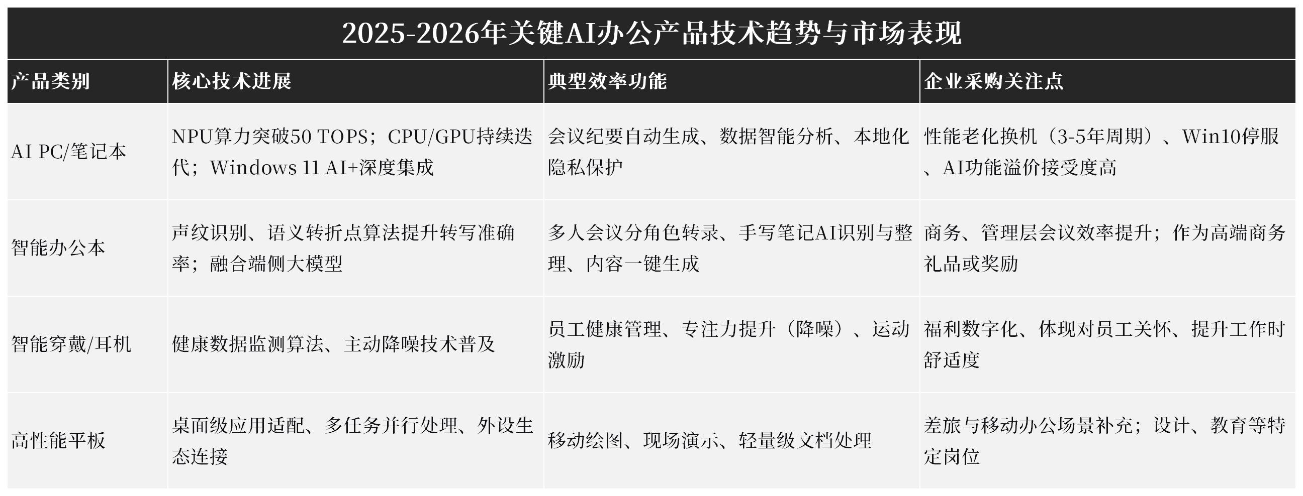 表1:2025-2026年关键AI办公产品技术趋势与市场表现