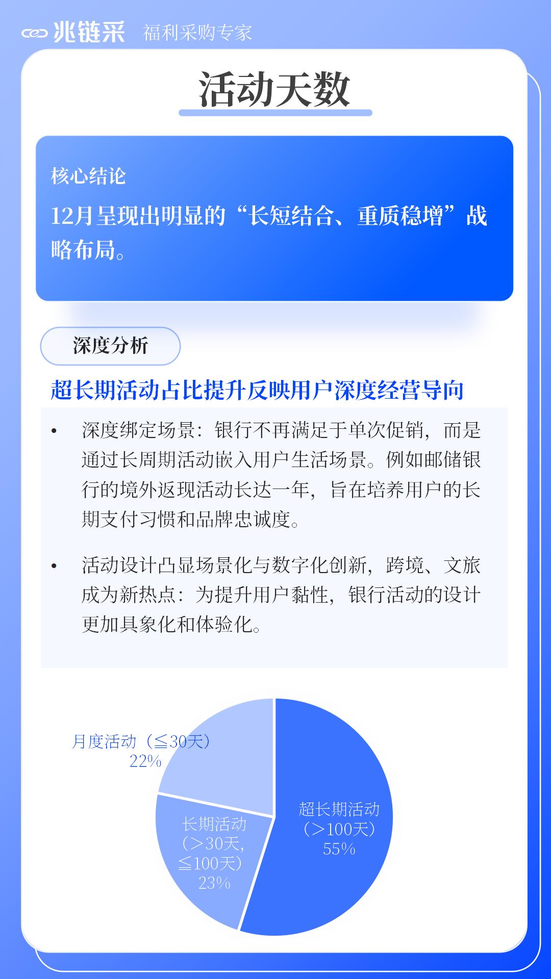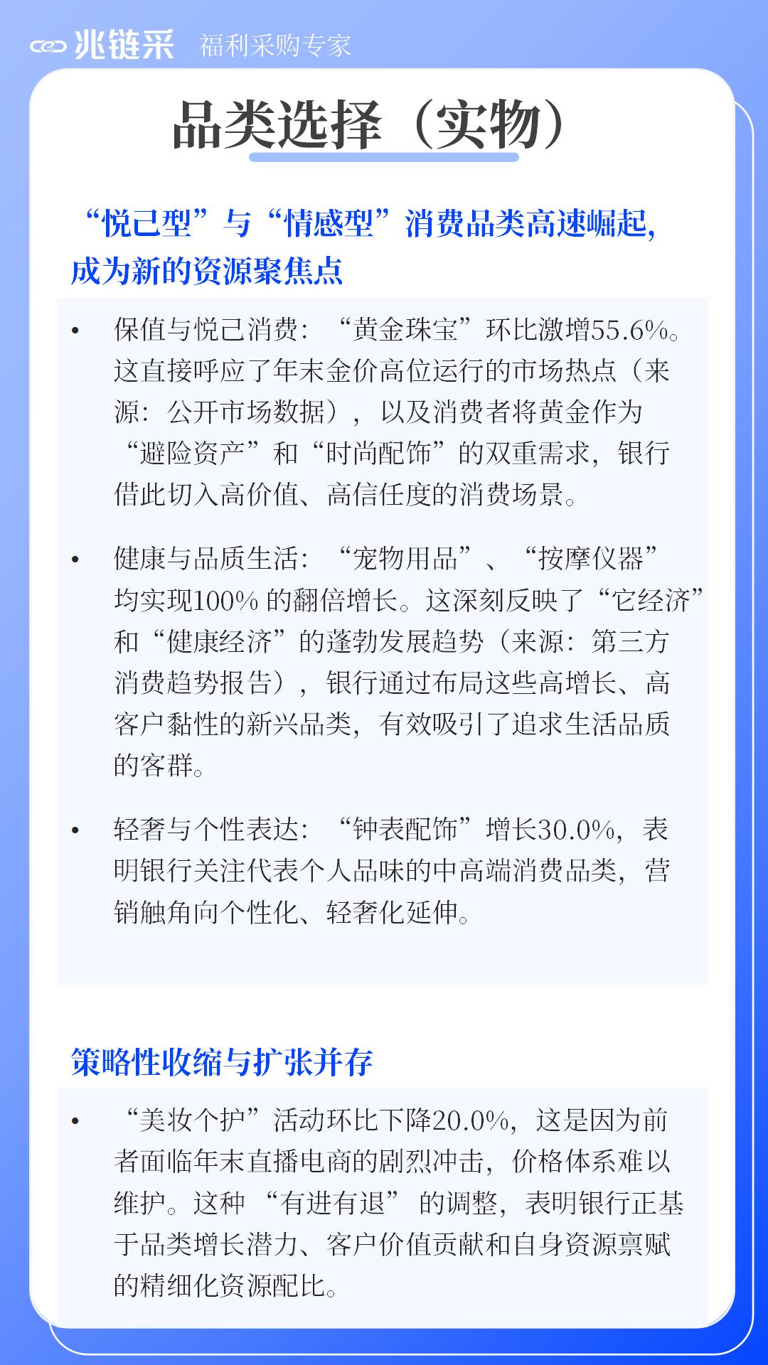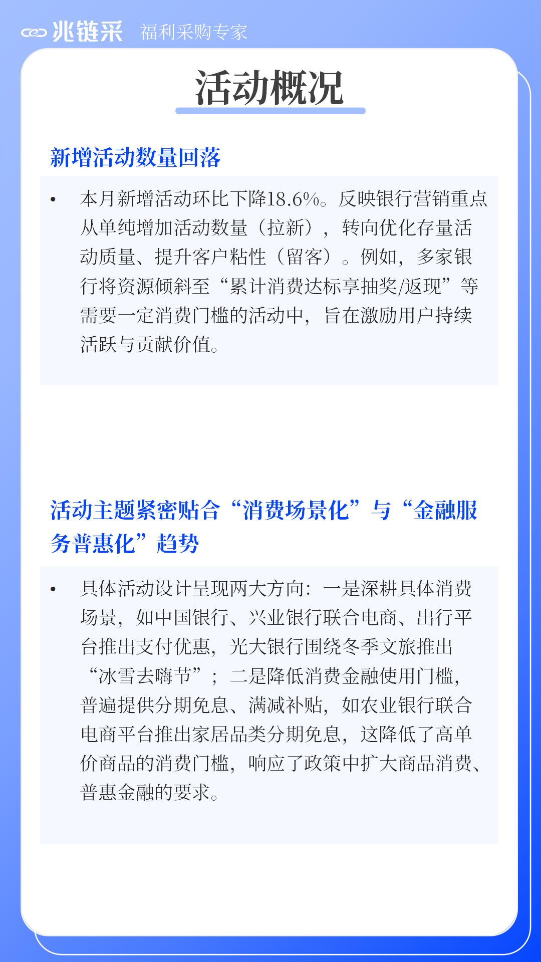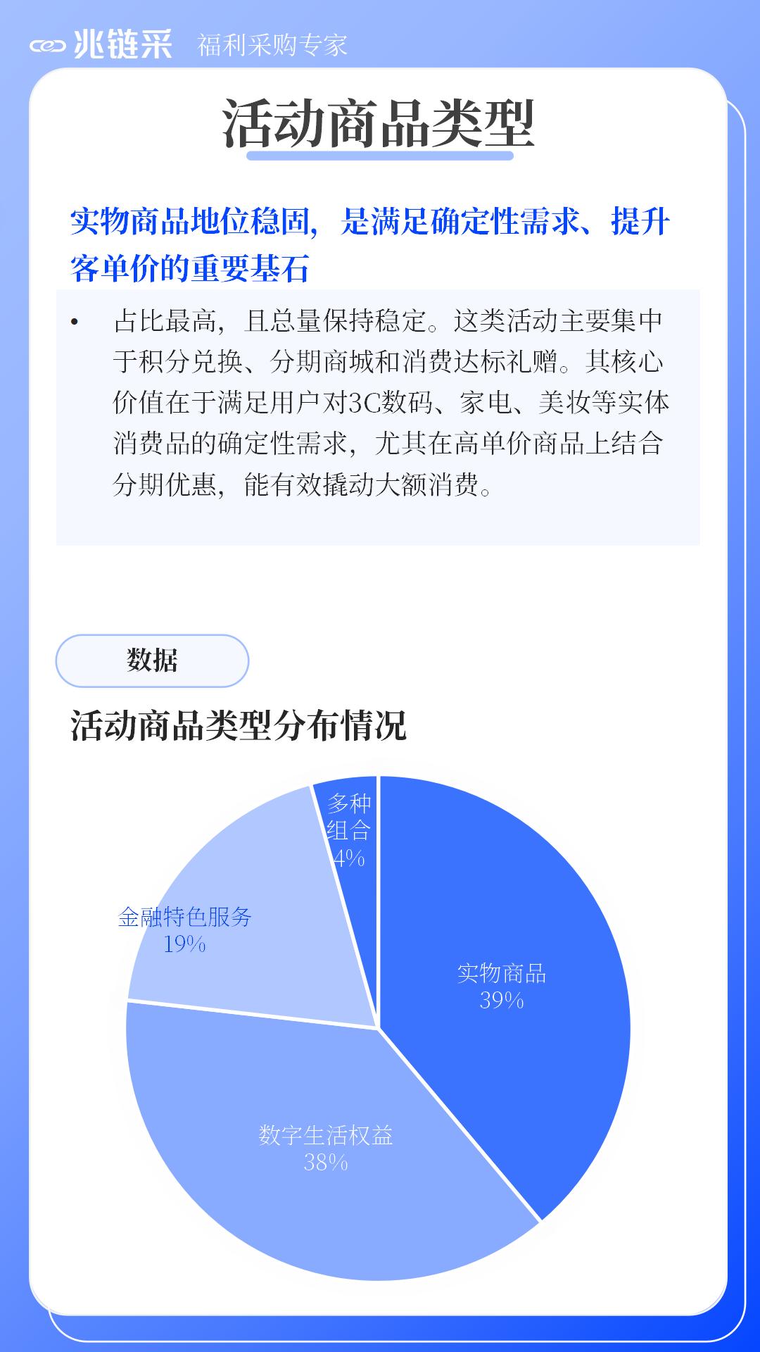 场景攻坚,权益崛起:“专题活动”占比最高(37.3%),数字生活权益占比(37.9%)已逼近实物商品,银行正加速融入客户高频生活场景。