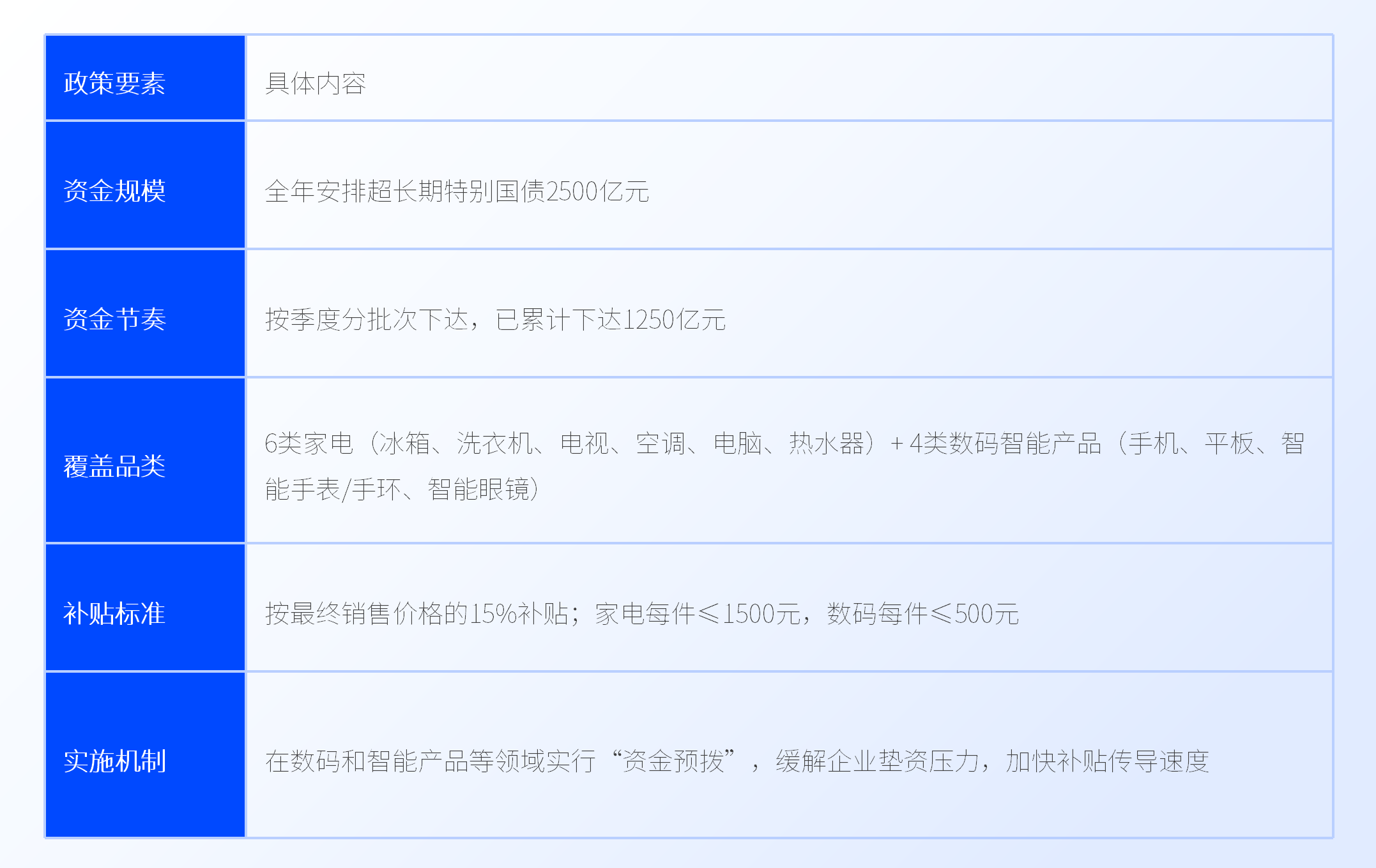 这不是今年第一笔“国补”。今年初,第一批625亿元资金已提前下达,而全年的总盘子是——2500亿元。