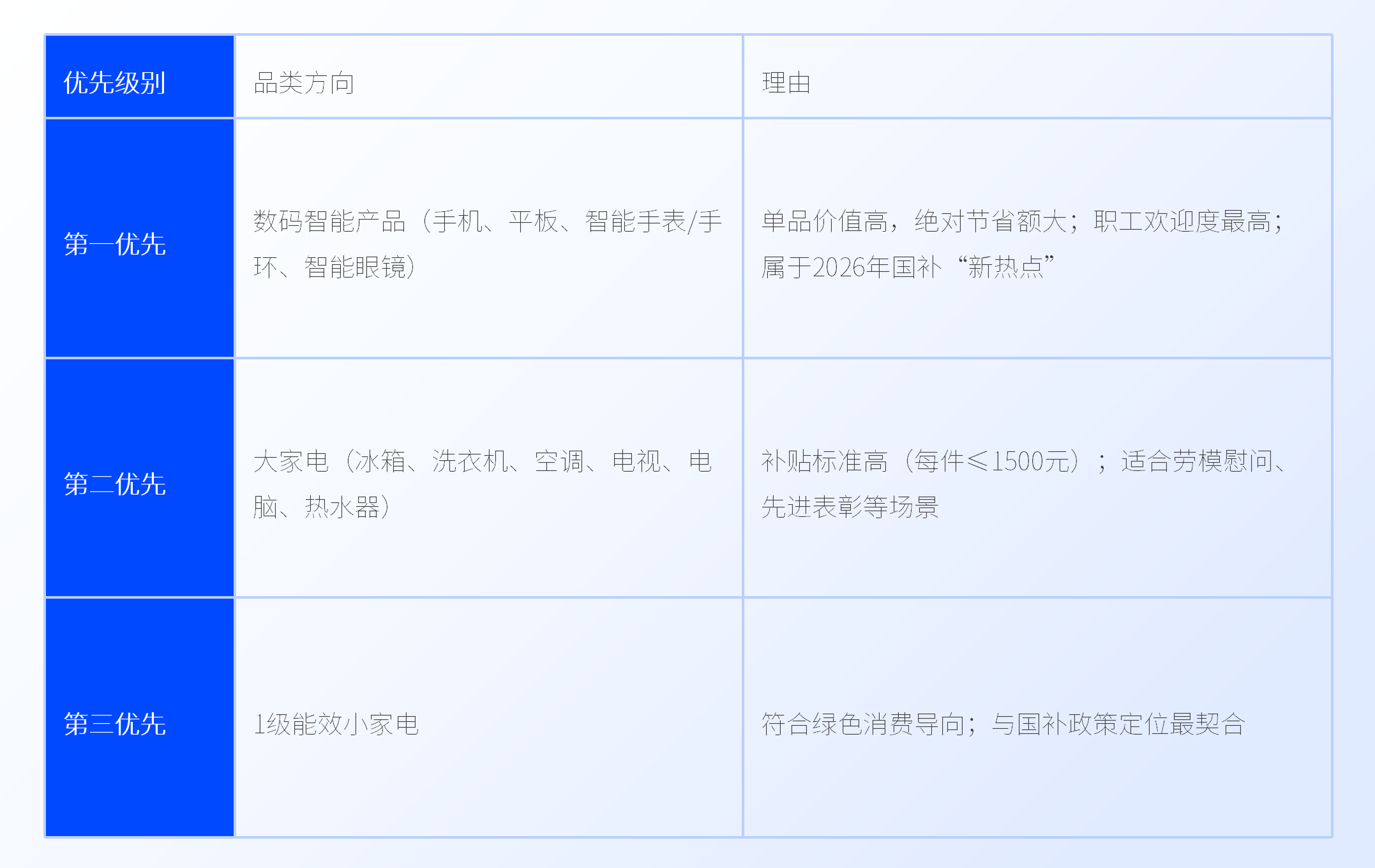 一是品类扩容。 补贴范围从传统家电扩展至手机、平板、智能手表/手环、智能眼镜等数码和智能产品,这些恰恰是职工日常消费意愿最强、工会福利选品空间最大的品类。