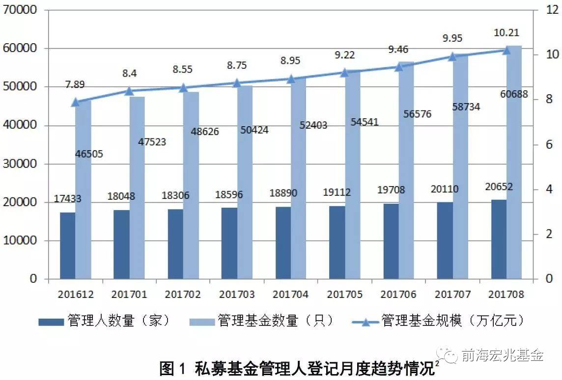 9月12日中国证券投资基金业协会发布私募基金管理人登记及私募基金产品备案月报(2017年第8期)。截至2017年8月底,中国证券投资基金业协会已登记私募基金管理人20652家,已备案私募基金60688只,管理基金规模10.21万亿元。